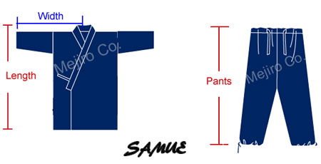 Japanese kimono style top and trouser originally worn by the Zen monks. Jacket has one pocket.