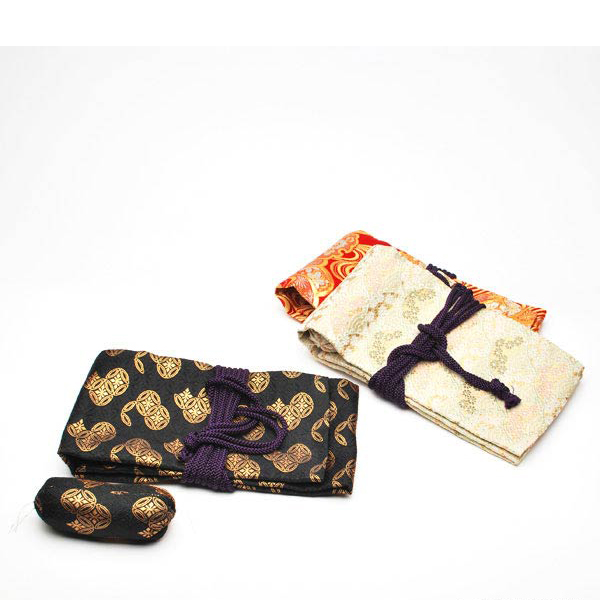 The gold brocade bag, which is designed for the storage and protection of the sho. To ensure its preservation, the sho should always be kept in this bag when not in use.
